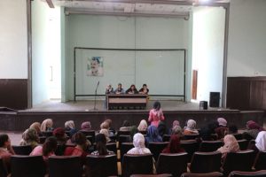 بدأ الاجتماع بالوقوف دقيقة صمت تخليداً لأرواح الشهداء، ثم دار نقاش حول موسع حول أعمال المرأة ضمن المؤسسات والدوائر، والمعوقات والصعوبات التي تتعرض لها في مواقع العمل، وطرح حلول مجدية لها.