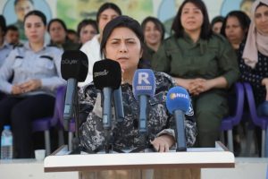 واختتمت فريال حسن الرئيسة المشتركة لهيئة الداخلية لشمال وشرق سوريا كلمتها بالقول: “أننا نذكر بواجب المواظبة والانضباط والتدريب ومتابعة كل ما هو جديد في مجال العلوم والمهارات العسكرية والأمنية لنكون جميعاً خير مثالاً يحتذى به في الانضباط والالتزام والنجاح، ونكرر مباركتنا للمرأة عموماً ولكافة الرفيقات وللحضور الكريم، ولعوائل الشهداء”.