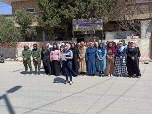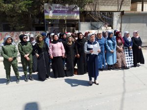 وقرئ البيان من قبل فاديا رسول إدارية في تجمع نساء زنوبيا وذلك امام مركز التجمع بوسط المدينة.