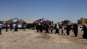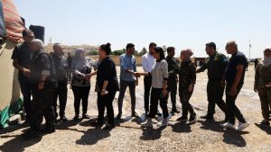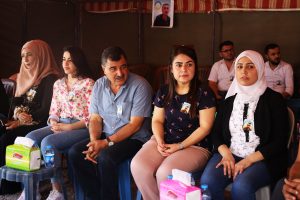 وتوافد إلى الخيمة ممثلون عن مجلس سوريا الديمقراطية وحزب سوريا المستقبل والمؤسسات العسكرية والمدنية، ووفد من هيئة التربية والعشرات من أهالي مدينة الرقة .