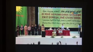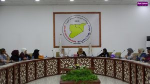 وشارك في المحاضرة عدد من المؤسسات والمجالس المدنية وهيئات المرأة وأعضاء مكتب المرأة في مجلس سوريا الديمقراطية، وبدأت المحاضرة بعرض سنفزيون تلاها قراءة محاضرة بعنوان “ثورة 19تموز” من قبل فاطمة محمد (العضوة للرئاسة المشتركة لمكتب المرأة في مجلس سوريا الديمقراطية) وأشارت خلالها أن” ثورة 19 تمز هي ثورة المرأة الحرة، التي حققت نجاحات واسعة لجميع المجالات وخاصة في المجال الاقتصادي والسياسي واصبح للمرأة دور في السياسية وإدارة أي مكان، حيث أصبحت رئاسة مشتركة إلى جانب الرجل، وافتتحت المرأة عدة مشاريع اقتصادية بهدف دعم اقتصاد المرأة ومساعدتها للاعتماد على ذاتها في ظل الظروف الاقتصادية الصعبة التي تمر بها المنطقة”.