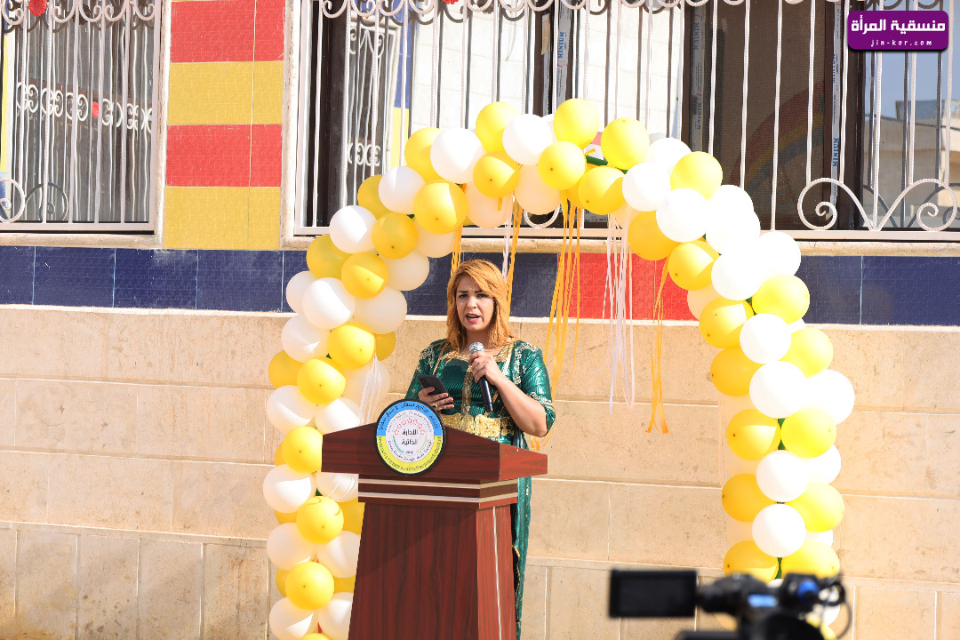 واستهل الافتتاح بالقاء كلمة من قبل السيدة ميساء عثمان (الإدارية لروضة الشهيدة سارة) رحبت خلالها بجميع الحضور على قدومهم ومشاركتهم في افتتاح روضة الشهيدة سارة للاطفال بالتزامن مع حلول اليوم العالمي للطفل، باركت وباركت يوم الطفل العالمي جميع أطفال العالم وأطفال شمال وشرق سوريا، وقالت”أتمنى للأطفال التوفيق والنجاح الدائم، لأنهم جيل المستقبل المشرق”.