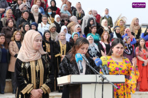 وأضاف البيان” أنّ مسيرتنا النضالية الطويلة هذه التي تخوضها النساء من أمريكا اللاتينية وجنوب أفريقيا وأوكرانيا والشرق الأوسط كأفغانستان وغزة والسودان واليمن وأنقرة وطهران وبغداد ولبنان وسوريا، وخاصة في كردستان بيث نهرين، ضد الأنظمة الفاشية والاستبدادية ودول الاحتلال والقوى الرأسمالية المحلية والعالمية من أجل حماية هوية وإنجازات ثورة المرأة وإفراغ مخططات العدو ضد المرأة من محتواه، وفي كل مكان في العالم اليوم، نظمت النساء أنفسهن أكثر من أي وقت مضى”.