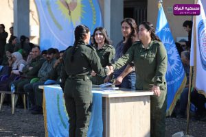 واختُتمت المراسم بتوزيع الشهادات على الخريجات، وتكريم عائلة الشهيدة رونيدا عثمان عبدو، حيث تمٓ تسليم صورتها إلى ذويها تخليداً لذكراها ومسيرتها النضالية.