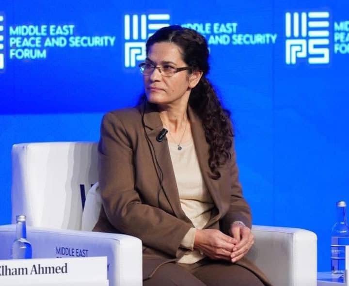 أكدت الرئيسة المشتركة لدائرة العلاقات الخارجية في الإدارة الذاتية لإقليم شمال وشرق سوريا، إلهام أحمد، أنّ ضمان حقوق المرأة وتمثيلها العادل يشكلان ركناً أساسياً في أي عملية سلام في سوريا، جاء ذلك خلال كلمة ألقتها بجلسة حوارية ضمن منتدى السلام والأمن في الشرق الأوسط – MEPS 2025، في الجامعة الأمريكية بدهوك.