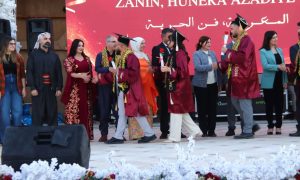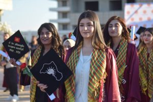 نظّمت جامعة روج آفا، اليوم، احتفالية لتخريج الدفعة الخامسة من طلابها، ضمت 211 طالبًا وطالبة من مختلف الكليات والأقسام، تحت شعار “المعرفة، فنّ الحرية”، وذلك في حديقة آزادي بمدينة قامشلو.