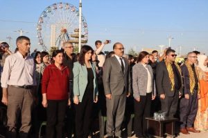 وحضر الاحتفالية الرئاسة المشتركة للمجلس التنفيذي في الإدارة الذاتية لإقليم شمال وشرق سوريا، أفين سويد وحسين عثمان، إلى جانب نائبيهما السيدة ترفة عثمان والسيد حسن كوجر ووفد من الإدارة الذاتية في مقاطعة الجزيرة، وممثلين عن أحزاب سياسية ومجالس وهيئات وشخصيات ثقافية، وعدد كبير من الأهالي.