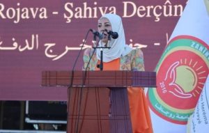 واستهل الحفل بدخول الطلبة الخريجين إلى حديقة آزادي؛ تلاه ألقت الرئيسة المشتركة لجامعة روج آفا زينا علي، كلمة رحبت فيها بالحضور، مؤكدة أن الجامعة حققت تطورات وإنجازات مهمة منذ تأسيسها، رغم التحديات، عبر توسيع الأقسام وتعزيز المسيرة الأكاديمية.