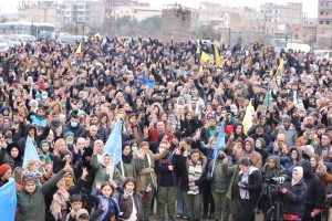 شاركت منسقية المرأة في الإدارة الذاتية الديمقراطية لإقليم شمال وشرق سوريا، اليوم، بوقفة احتجاجية بمدينة الحسكة، تنديداً بالانتهاكات التي استهدفت المدنيين في حلب، واستذكاراً لشهداء مقاومة حيي الشيخ مقصود والأشرفية، وذلك بالتزامن مع المراسيم المقامة بمدينة كوباني لتوديع شهداء المقاومة.